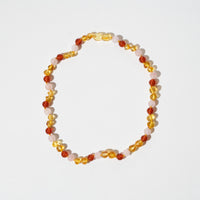 Polished Honey Amber, Red Carnelian, Rose Quartz, safety clasp