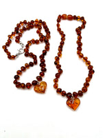 Caramel Amber Necklace with Amber Heart Pendant
