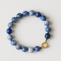 Finished with an 18K gold-plated 925 sterling silver clasp, it offers both elegance and security. Often associated with intuition, truth, and calm communication, sodalite is a stone that supports balance and self-expression – making this piece as meaningful as it is beautiful.