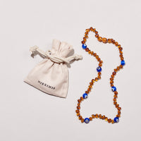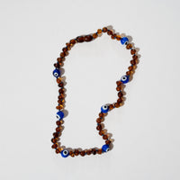Necklace made with our Polished Caramel Amber paired with cute Evil Eye Glass Beads.