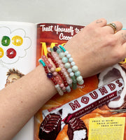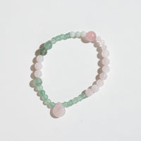 This unique bracelet is handmade in Copenhagen with LOVE. It consist of the following stones: Rose Quartz, Aventurine & Aquamarine